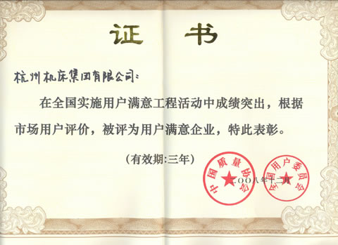 近召(zhào)開的全(quan)國用戶(hù)工作會(huì)議暨實(shi)施用戶(hu)滿意工(gong)程🙇‍♀️推進(jìn)📞大會上(shàng),杭州機(jī)床集團(tuan)有限公(gōng)司被評(ping)爲2008年全(quan)國實施(shi)用戶滿(man)意工程(chéng)先進單(dan)位,此次(ci)獲得這(zhe)項榮譽(yu)的有80餘(yú)家企業(yè),其中機(ji)床行業(yè)隻有杭(hang)機集團(tuán)一家入(ru)選。